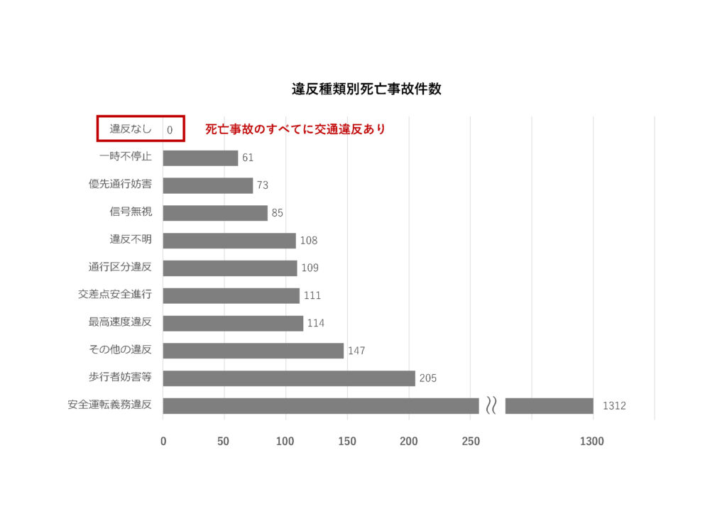つまり、死亡事故の100%において、ドライバーに何らかの「法令違反」があったということです。
